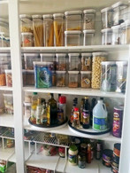 There's just nothing better than an organized pantry! It makes life so much easier, especially when it comes to meal planning and shopping. Clear containers keep food fresh and it's just a quick glance to see if you're running low on staples or the all important snacks! When organizing your pantry, think vertically....you'll find you have a lot more storage space than you think. Good stackable containers are a must and there's always room for extra little shelves, can organizers, baskets, and more.